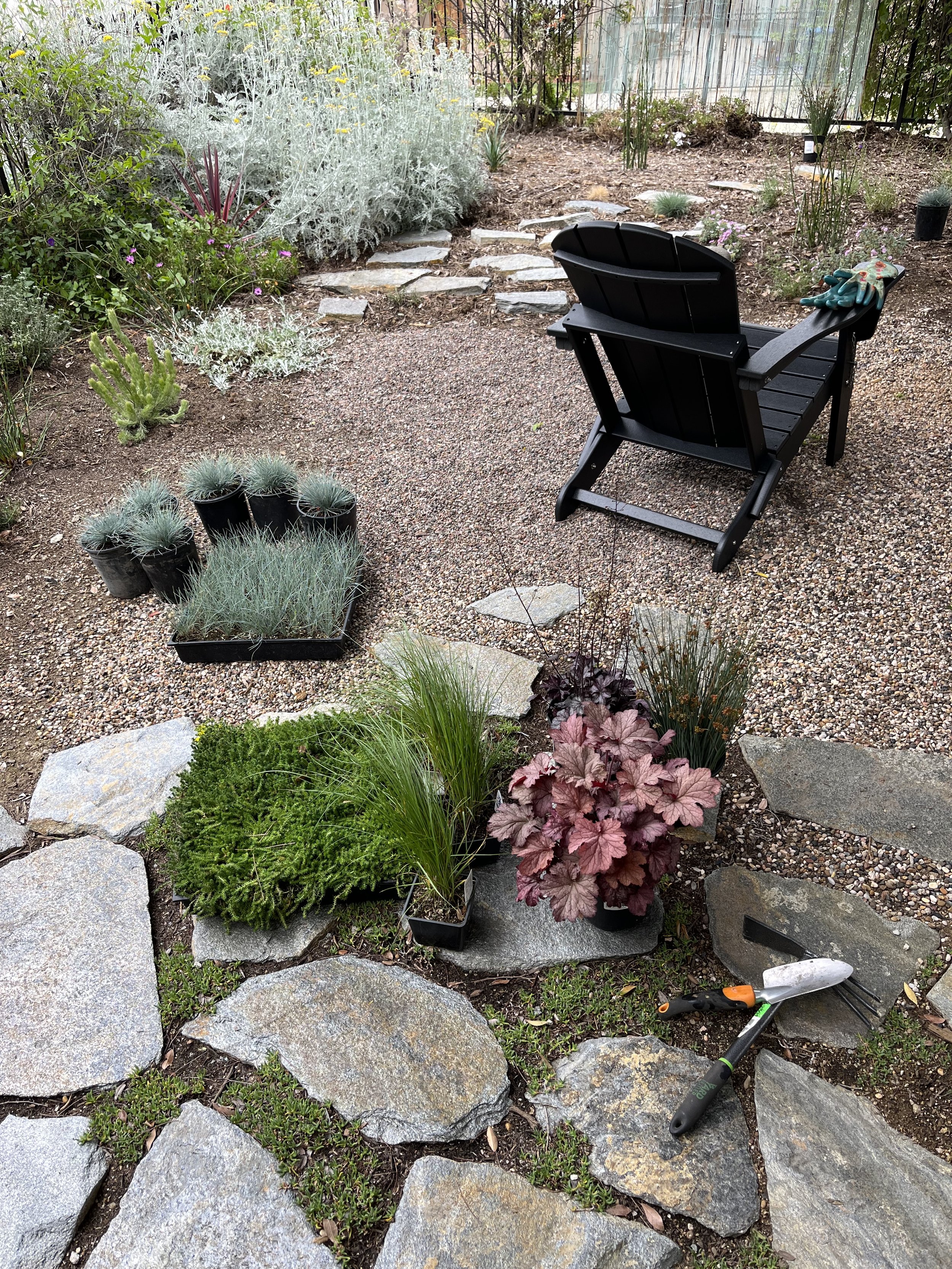 "Annie was such a joy to work with. We had a big rectangle of dirt that we wanted to turn into habitat and sanctuary, and she was able to very quickly tune in to what we wanted and create something beautiful and perfect for our needs. She created distinct areas, using plants, pathways, and a patio, so that what was once undifferentiated space now feels like our own little park. We spend so much time out there now and get so much pleasure out of watching our plants grow. Annie’s artistic sensibility, her plant expertise and enthusiasm, her availability to answer all our questions, and her overall loveliness as a person made the entire process a fun adventure, and now we have a garden that we are absolutely in love with. Thank you, Annie".