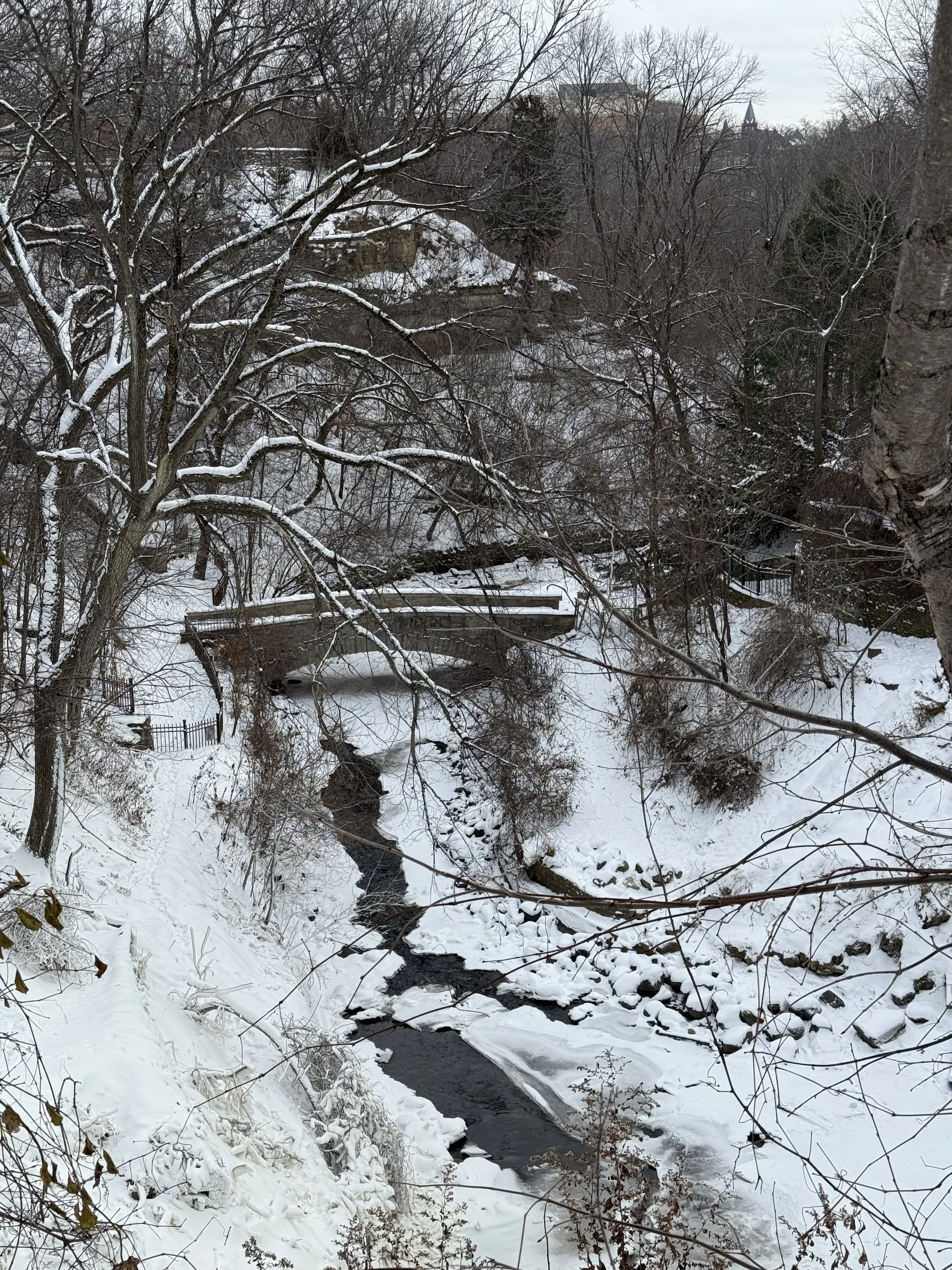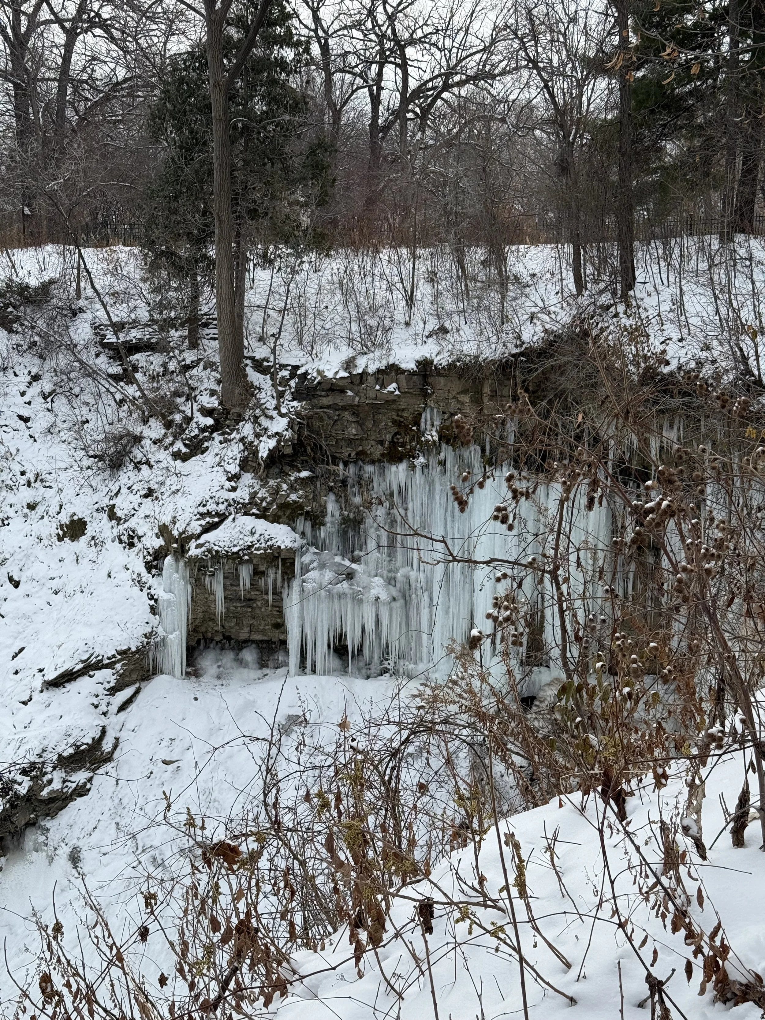 The other day I found a killer breakfast burrito place down the street from my house. A hole in the wall, why are they always the best? They were playing Bob Ross on the TV. Inject those happy little clouds right into my veins. So comforting. On the way home along the lake I saw a bald eagle being chased by a black bird. Min and I went to see the frozen falls and saw a mink playing in the creek.