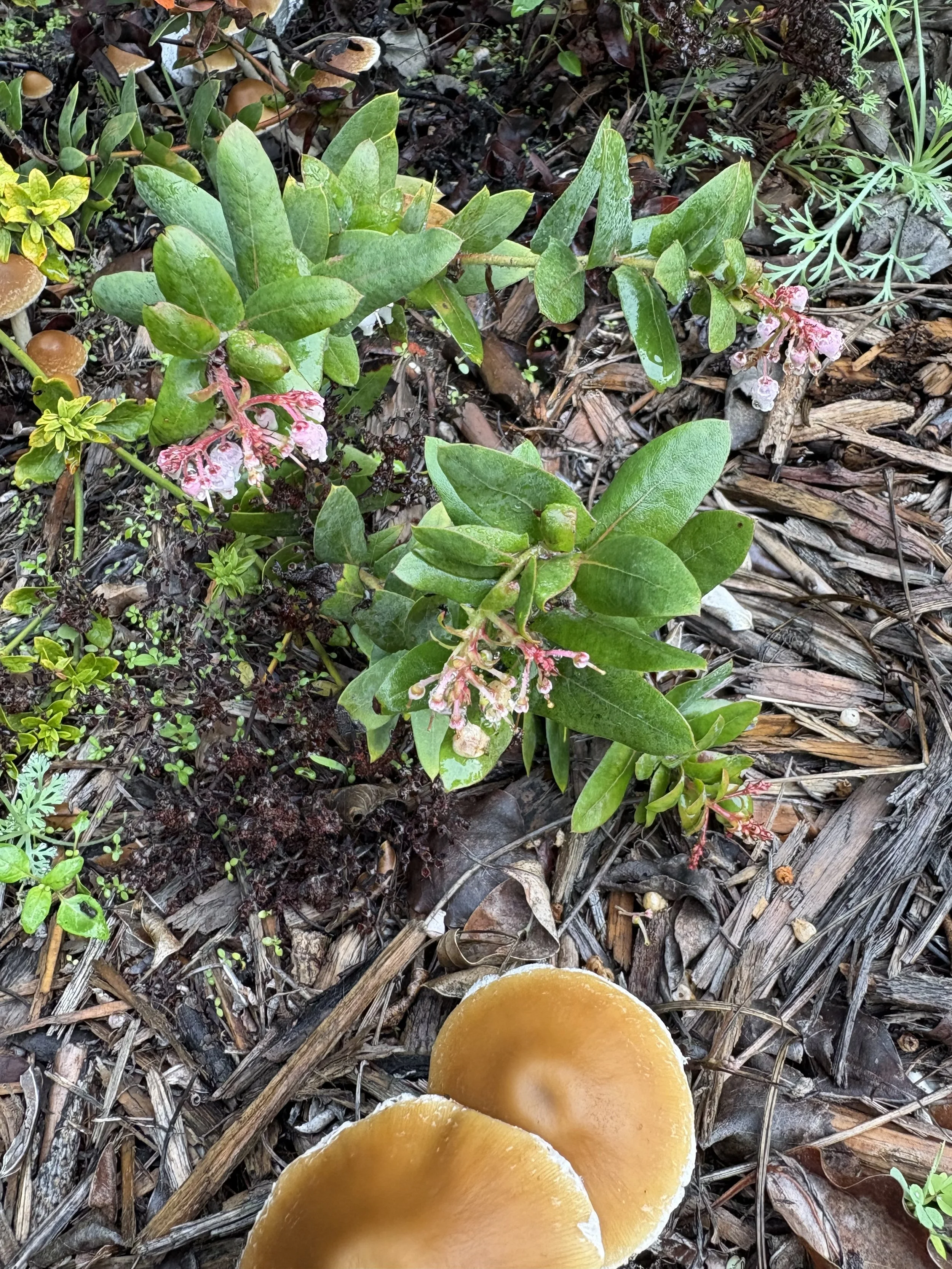 Manzanita blooming and soil restoration in action.