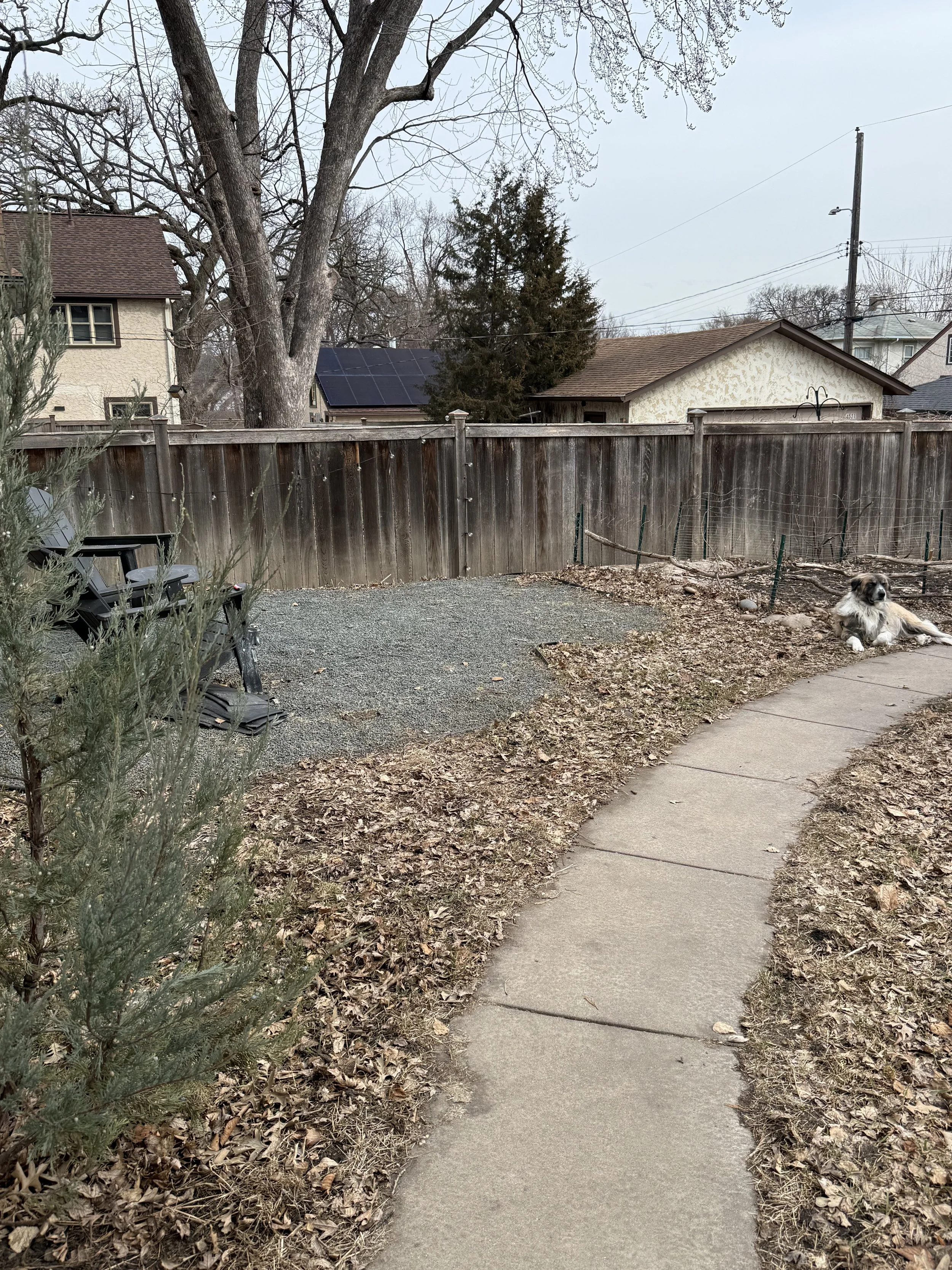 We are in the weird brown season, after the snow has melted, and we await the intense burst of growth to come. I have designed a landscape for the front and back yards and cannot wait to get going on it! The patio, trees and food garden area I put in five years ago provide a good jumping off point.
