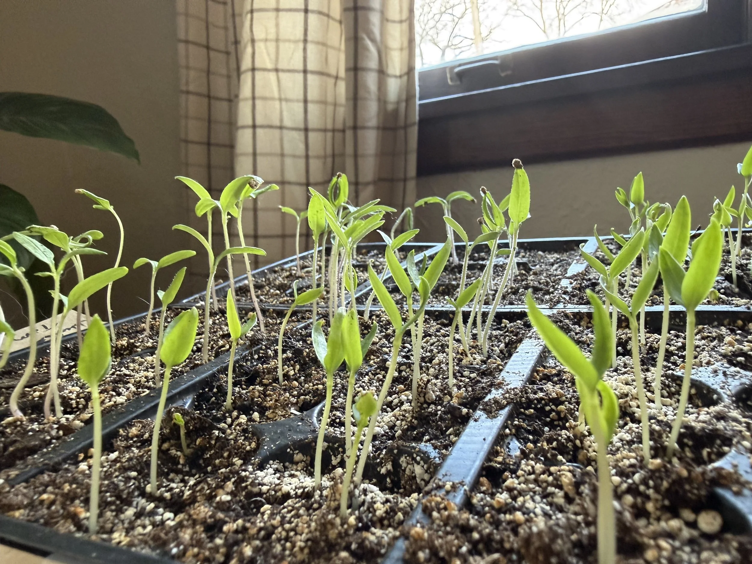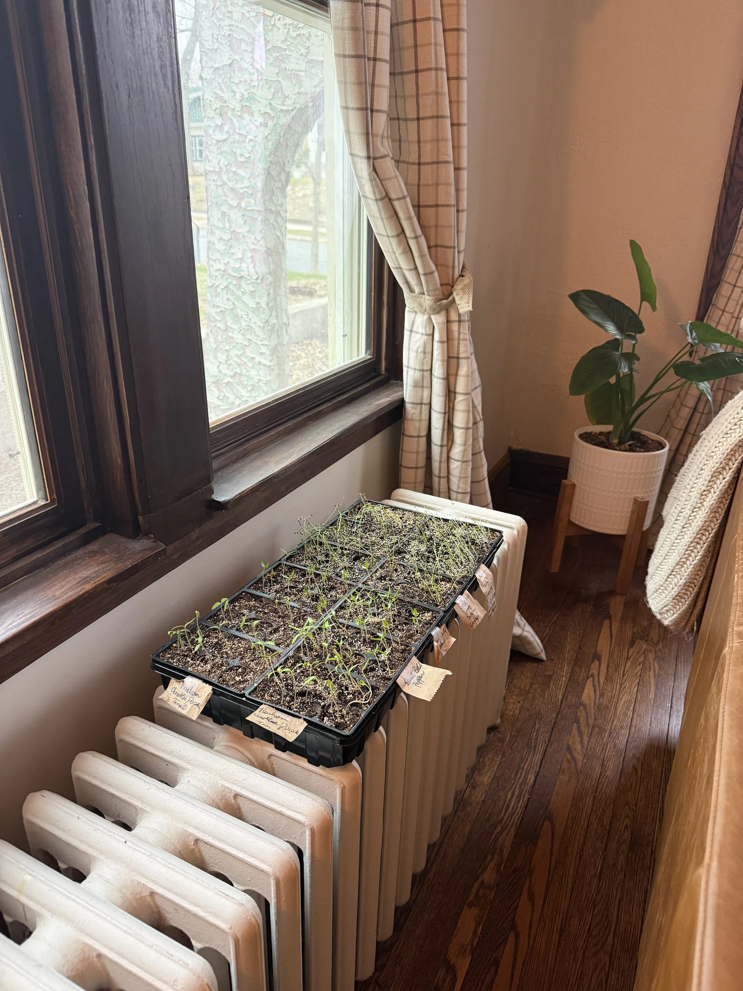 I’ve been using the radiators (I have the kind that don’t get too hot) and window light to baby my seedlings along.